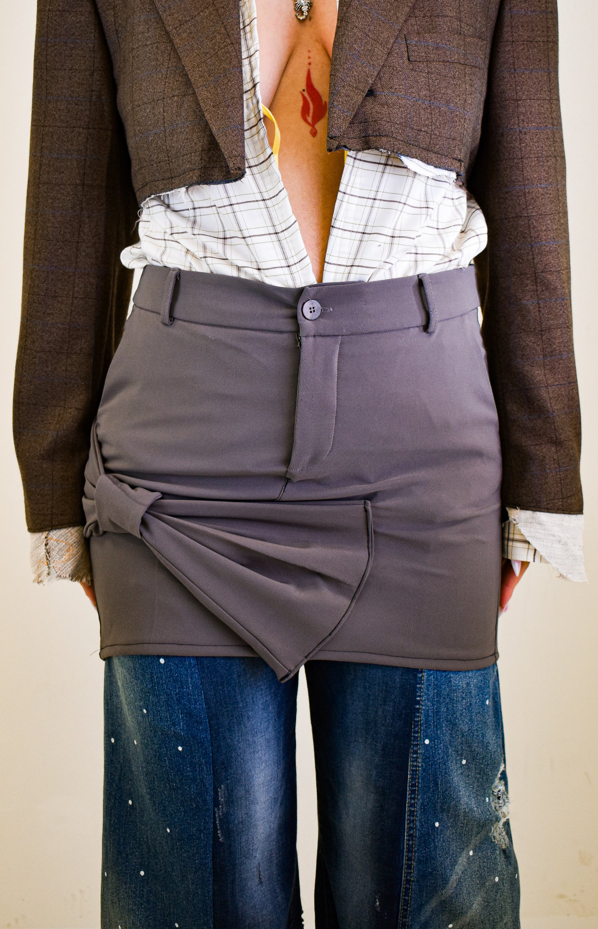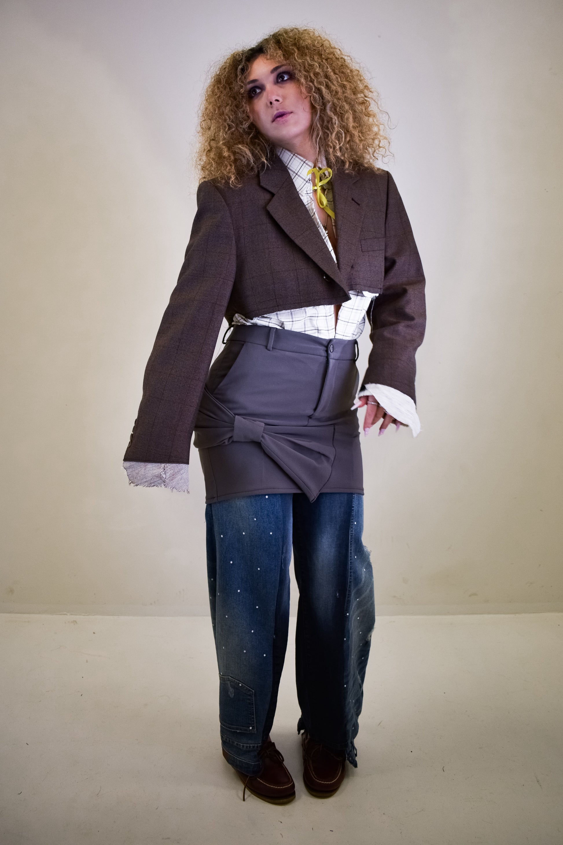 This reworked piece is constructed from repurposed materials, carefully redesigned to create a one-of-a-kind garment. Each item carries its own character, subtle imperfections, variations in fabric, and unique detailing are intentional and part of the design.