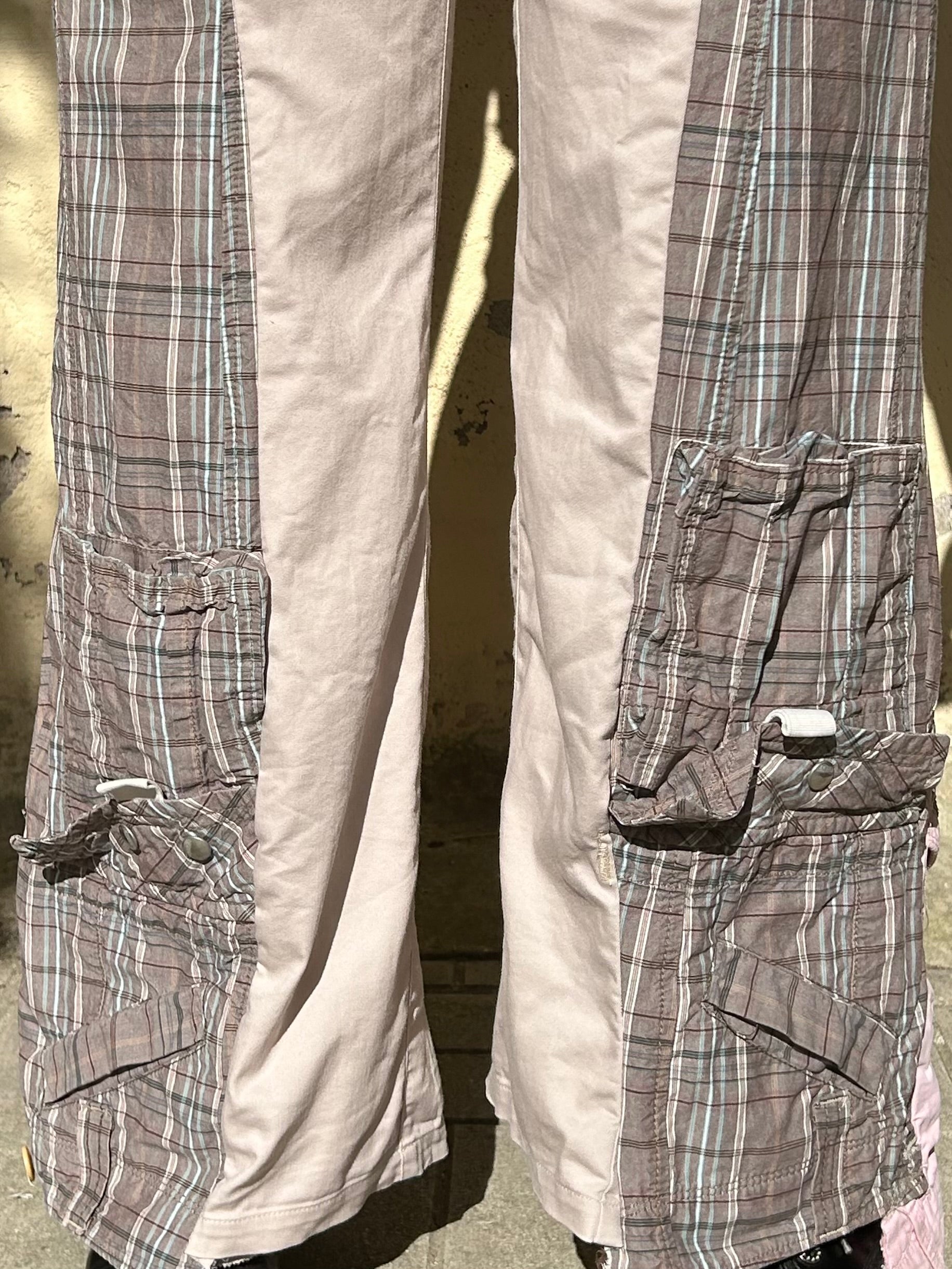 Mixed fabrics pants made from preloved jeans.